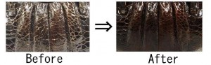 カメちゃんバッグの様子を見ながら、交互に数回繰り返して入れていくことにより皮革がぐんぐん元気になりしっとりピカピカになっていきます。………さて、皆様いかがでしょうか?