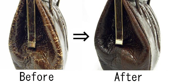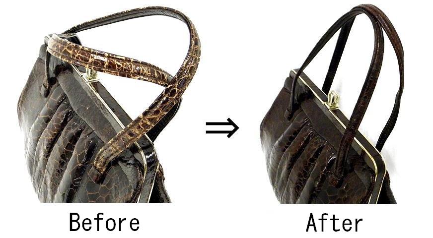 たっぷりの栄養剤のおかげで、曲がってしまった持ち手も柔らかく形を整えられ、バッグ全体に重厚感が蘇えりました。